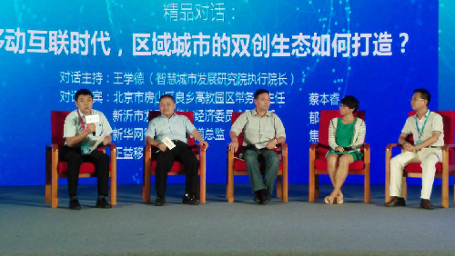 在“互联网+双创”分论坛中,蔡本睿同志做了“智慧互联,双城双创”的主题发言。在发言中,蔡本睿同志介绍了良乡高教园区的建设发展情况,并结合良乡高教园区的实践经验提出了以智慧城市建设为抓手、充分利用本地和外地资源、进行双城双创的新型发展模式。