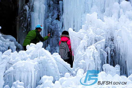 当你还没欣赏够气势磅礴、波澜壮阔的“飞流直下三千尺,疑是银河落九天”的山壁冰瀑,逛到朝阳映照的金碧辉煌山门,进入梦幻谷,就被冰石花、冰玛瑙、冰枝、冰珍珠、冰石笋、冰洞冰柱等美不胜收的奇妙景观所惊喜。玲珑剔透的冰石塔、晶莹璀璨、典雅秀丽的冰花奇葩,四壁生辉,千姿百态,玲珑剔透,奇异多姿 ,令人展开遐想的翅膀。游客们争先拍照留影。