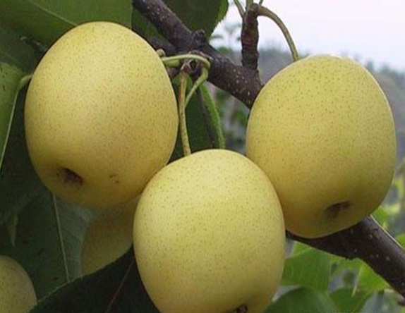 黄金梨品种果实呈圆形,稍扁,果皮金黄色,故称为黄金梨。平均单要重300350克,果肉细嫩,果汁丰沛,可溶性固形物含量14.7%左右,酸甜可口,风味极佳。